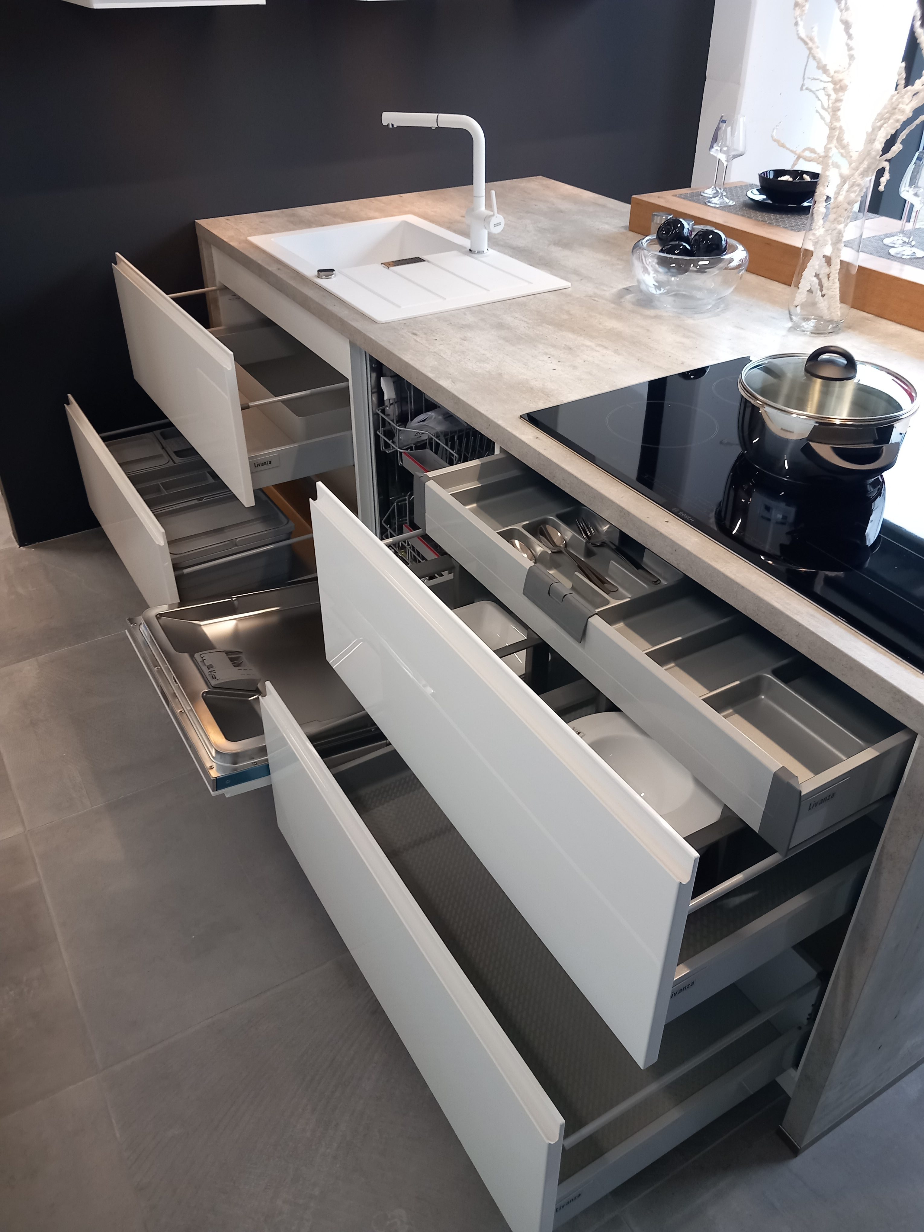 Kvalita Made in Germany. Kuchyně Livanza navrhované předními designéry vynikají obrovským výběrem dekorů, barevných odstínů a různých typů provedení povrchu v duchu nejaktuálnějších trendů. Současně disponují nekonečnou variabilitou uspořádání a vybavení. Tyto kuchyně vyrábíme individuálně, přesně na míru vašim dispozicím a požadavkům v ultramoderní německé továrně.